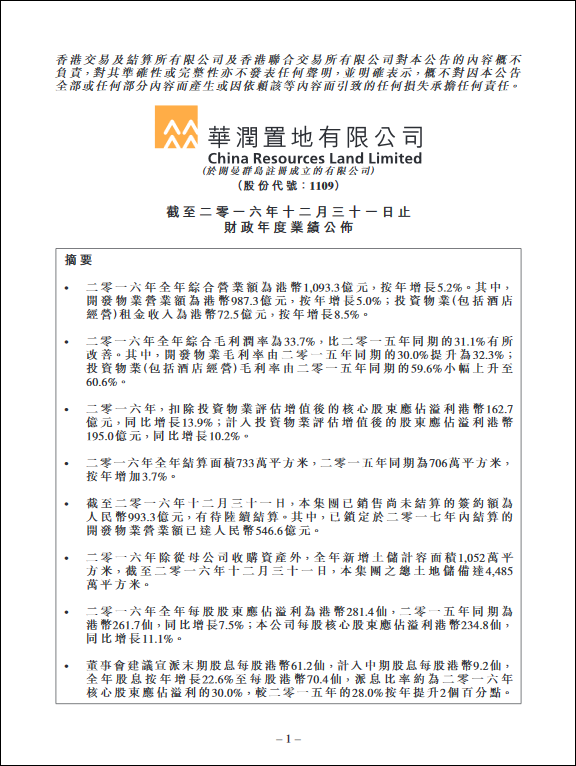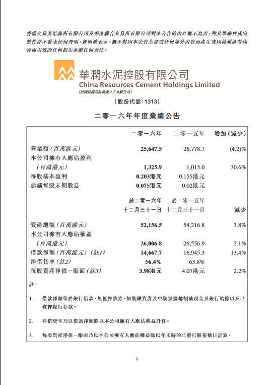 2016年年度业绩报告
