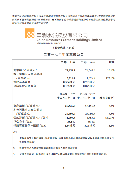 2017年年度业绩报告