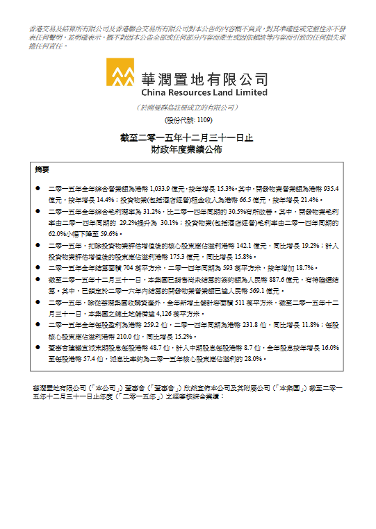 2015年年度业绩报告