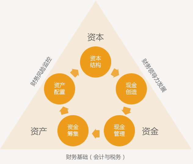 5C体系是以资本、资金、资产管理为主线,以资本结构(Capital Structure)、现金创造(Cash Generation)、现金管理(Cash Management)、资金筹集(Capital Raising)和资产配置(Capital Allocation)为核心的价值型财务管理体系。5C体系内在的逻辑循环:公司在价值创造过程中,首先考虑资本来源、资本成本和结构比例,设定公司资本结构;通过经营活动将资本转化为有竞争力的产品或服务,实现现金创造,获得持续增长所需的内部资金来源;通过付息、派息、现金周转与资金集中等进行现金管理;通过与资产结构相适配的资金筹集安排,获得持续增长所需外部资金来源,并通过资产配置活动动态调整资产组合以实现公司价值持续增长,从而形成价值创造的完整循环。