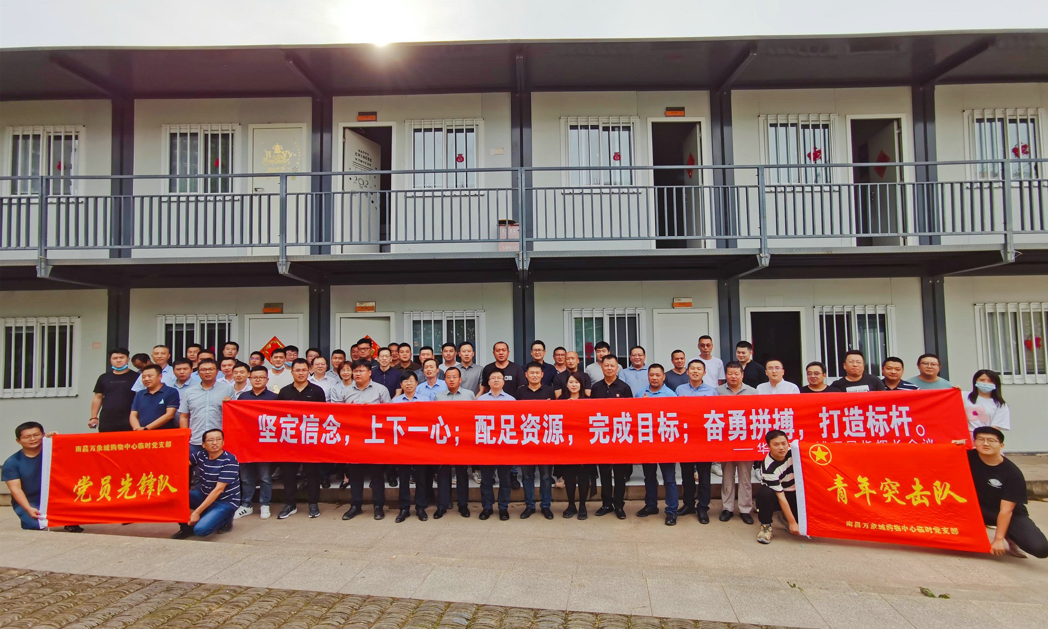 后期,他推动项目成立临时党支部,号召各参建单位党员、青年积极加入“党员先锋队”“青年突击队”。在一场场硬仗中,项目团队逐一克服了方案变更、雨季连绵、夏季高温、疫情反复、招商掉铺、租户进场晚等难关,稳步达成各级节点,完成消防验收,为租户进场及装修创造便利条件。